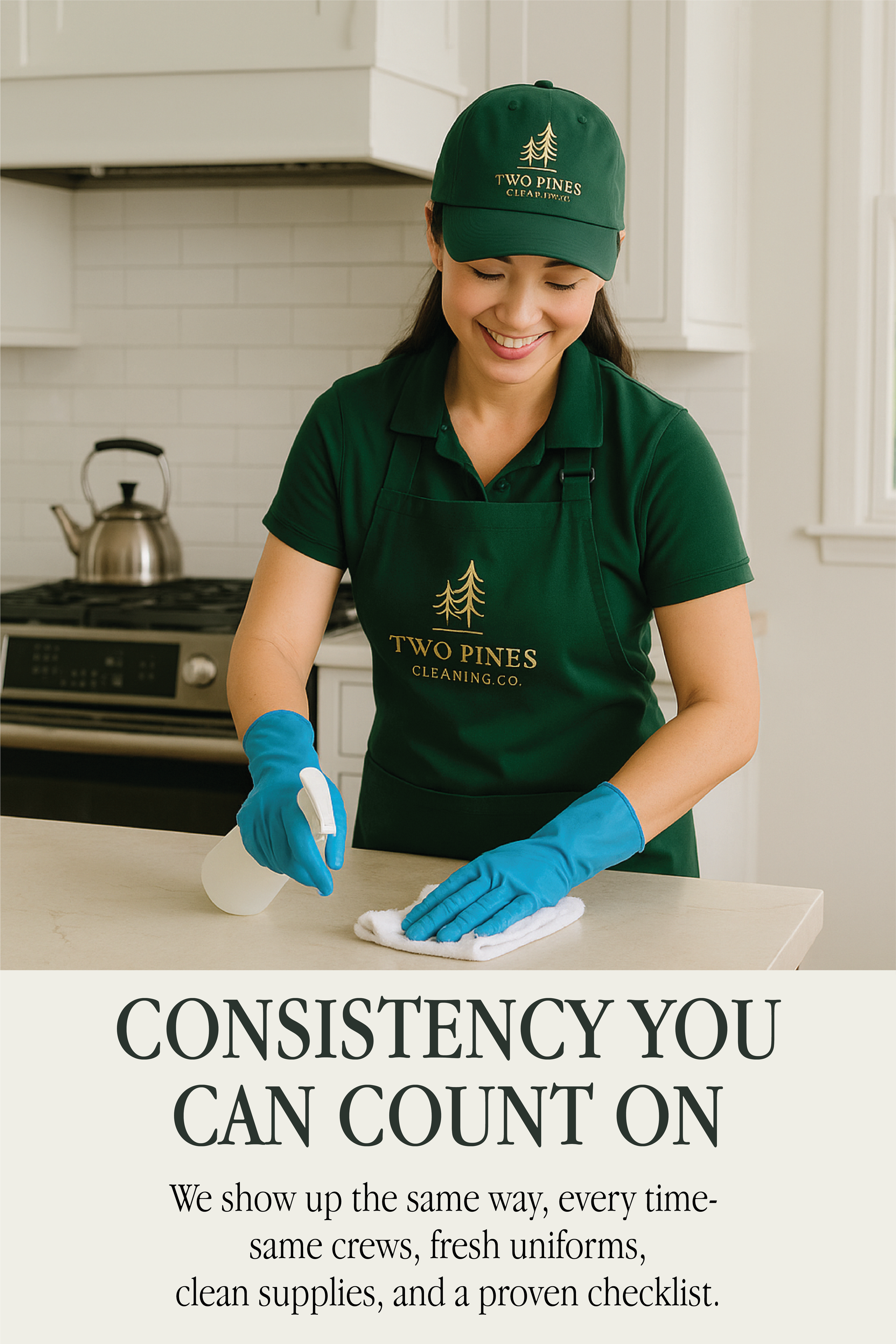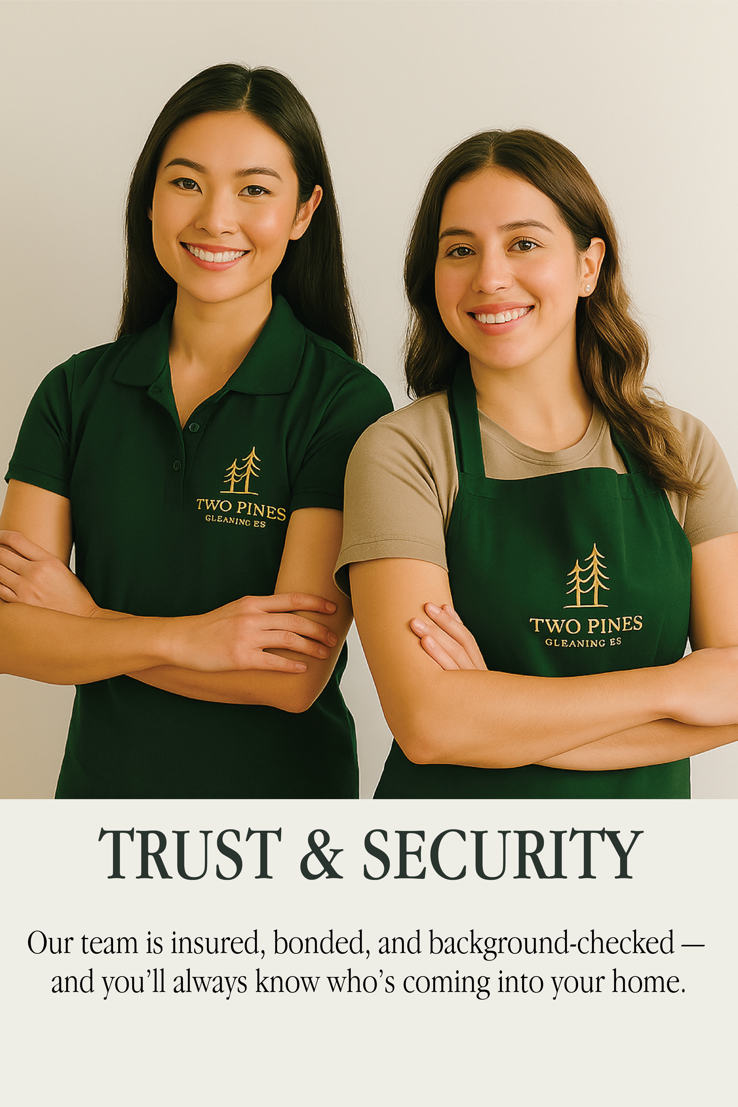At Two Pines Cleaning Co., we offer flexible services to fit your needs — from routine upkeep to detailed deep cleans. Our team uses eco-friendly products, delivers consistent results, and treats every home with care. Whether it’s a regular visit, move-in/move-out, or add-on services like laundry or appliance cleaning, we make it simple to keep your space fresh and welcoming.